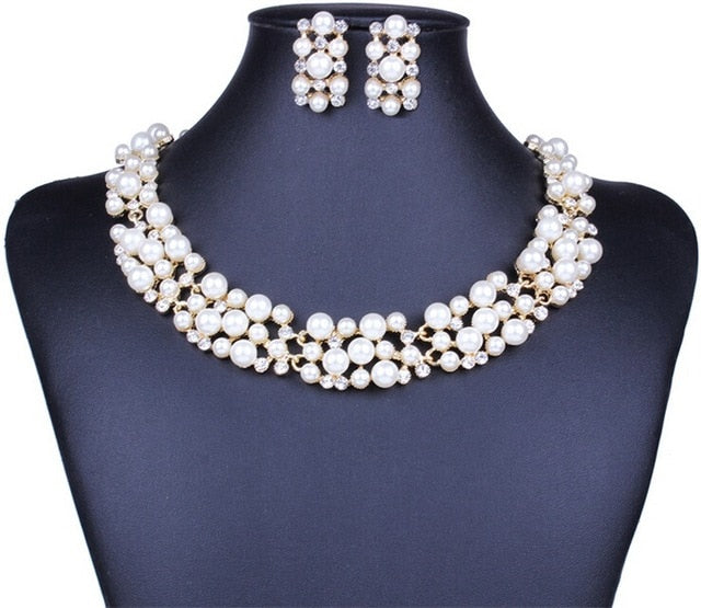 Stop for a moment and take a look at this majestic jewelry set! It will make you shine! The set includes a necklace and earrings that are sophisticatedly designed with pearls and crystal will be a timeless accessory to any fashion collection. It’s an excellent gift for anniversaries, weddings, festivals, birthdays, parties, graduations or just as a surprise to your special person. Buy it now!