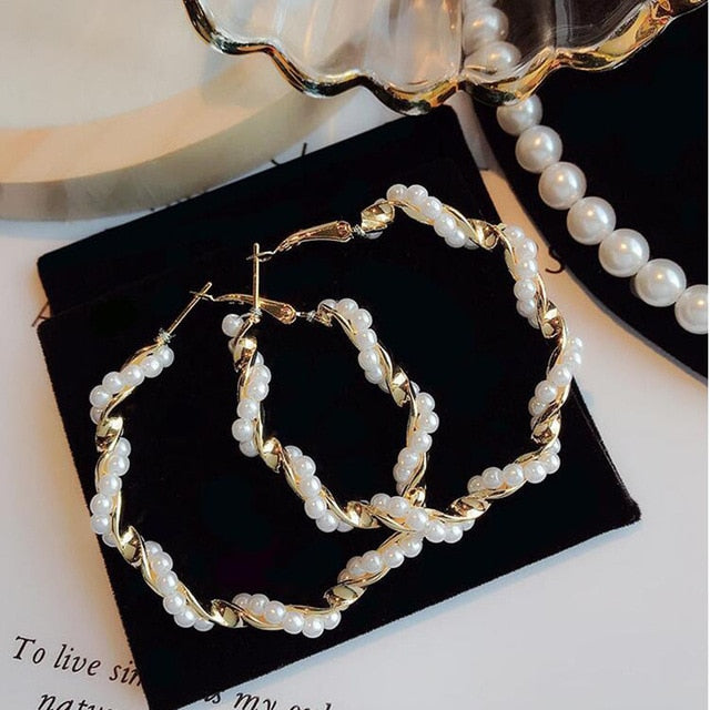 Luxury Exaggerated Big Circle Imitation Pearl Earrings
