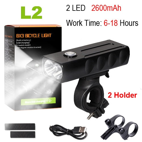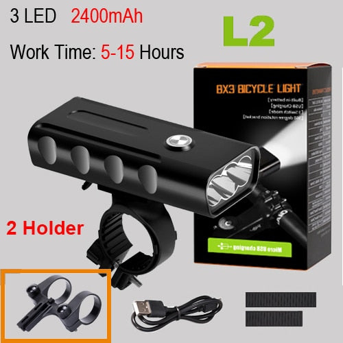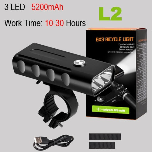 NEWBOLER 5200mAh Bike Light Kit T6 L2 Flashlight For Bicycle 2400 Lumen Led Lantern USB Headlight Mount Bracket Cycle Fornt Lamp